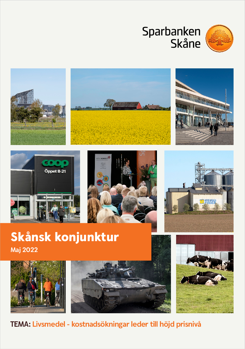 Efter att 2021 blev ett återhämtningens år i Skåne väntar nu nya utmaningar. Likt stormens öga befinner sig ekonomin i ett mellanläge mellan coronapandemins påverkan och ett nytt läge med högre räntor samt dyrare mat, energi och drivmedel. För en skånsk tvåbarnsfamilj kan det komma att innebär 6 000 kronor mer i levnadskostnader per månad. Livsmedelspriserna har de senaste 12 månaderna stigit med sex procent. Temat i vårens rapport är hur jordbruks- och livsmedelssektorn, som står för en betydande del av hela landets produktion och omsättning, påverkas av det nya kostnadsläget och hur det väntas påverka konsumenterna framöver.