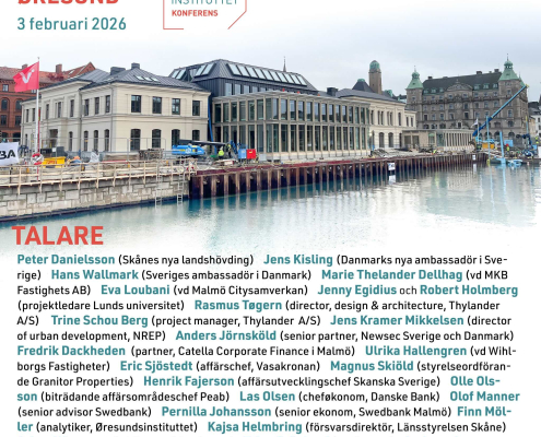 Den 3 februari 2026 samlas Öresundsregionens samhällsbyggare för att delta vid årets upplaga av Øresundsinstituttets konferens Real Estate Øresund. Temat för konferensen är ny framtid. Anmäl dig och möt Jens Kramer Mikkelsen, director of Urban Devlopment vid NREP. Han har en bakgrund som vd för Köpenhamns utvecklingsbolag By & Havn och som stadens överborgmästare. Det innebär att han har varit en av nyckelpersonerna bakom omvandlingen och moderniseringen av Köpenhamn. Detta i kombination med hans nuvarande roll på NREP ger honom en unik kunskap om Köpenhamns stadsutvecklig och fastighetsmarknad.