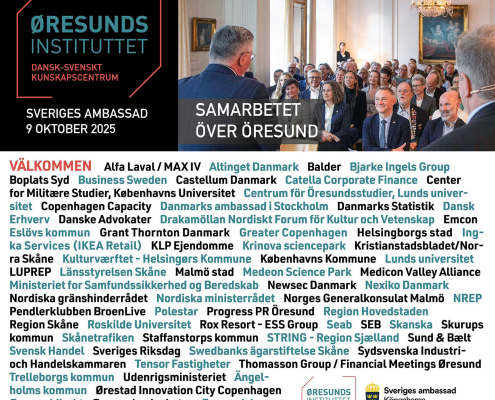 Øresundsinstituttet är ett dansk-svenskt kunskapscentrum som samlar offentlighet och näringsliv i ett unikt nätverk bland annat på våra konferenser och medlemsmöten. Som medlem har ni alltid två kostnadsfria platser på våra konferenser.