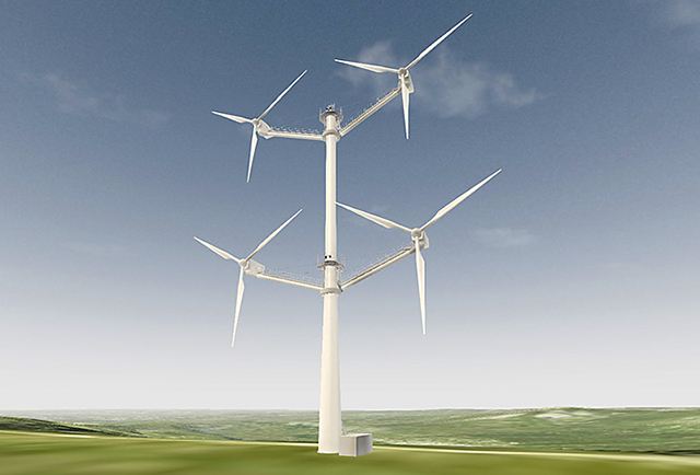 En ny typ av vindkraftverk med fyra rotorer byggs just nu av danska vindkraftsjätten Vestas i samarbete med Danmarks Tekniska Universitet, DTU, vid forskningsanläggningen Risø utanför Roskilde. Den nya tekniken ska göra det möjligt att få ut mer energi utan att låta vindkraftverken växa på höjden. Det uppger Vestas i ett pressmeddelande.