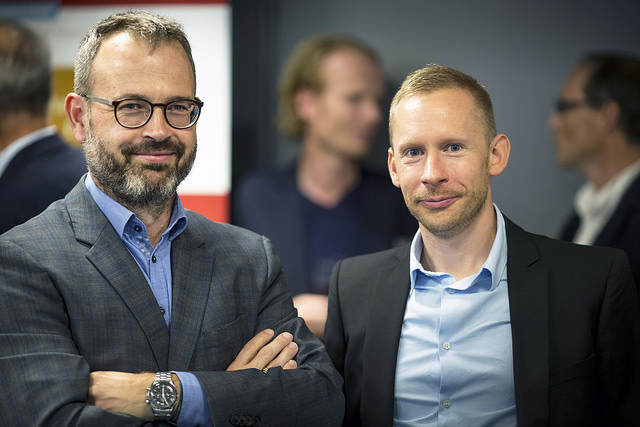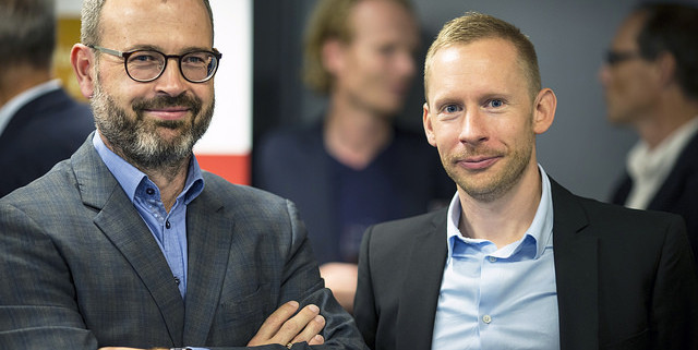 Vid måndagens extra årsmöte fick de ett enhälligt stöd för Medicon Valley Alliance nya strategi – ordförande Søren Bregenholt från Novo Nordisk och MVA:s tillförordnade vd Petter Hartman. Foto: News Øresund