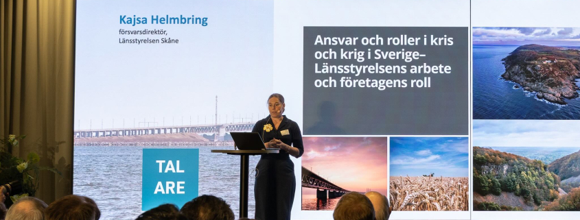 Med 320 samhällsbyggare framför sig talade Skånes försvarsdirektör Kajsa Helmbring vid Øresundsinstituttets konferens Real Estate Øresund om Sveriges nya totalförsvar där det planeras för att under minst tre månader kunna möta och hantera ett krig.